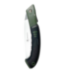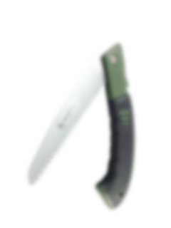 Praktisk foldbar tursav af høj kvalitet. Savbladet er fremstillet med en hårdhed Rockwell C (HRC) på 52, mens tænderne har en HRC på 65. Bladet er slebet fra tre vinkler for optimal effekt. Tænderne er forkromede for ekstra slidstyrke. Gummibelagt håndtag, der sikrer et godt greb. Nemt at justere bladets vinkel med trykknap. Savbladet kan låses i to forskellige positioner.