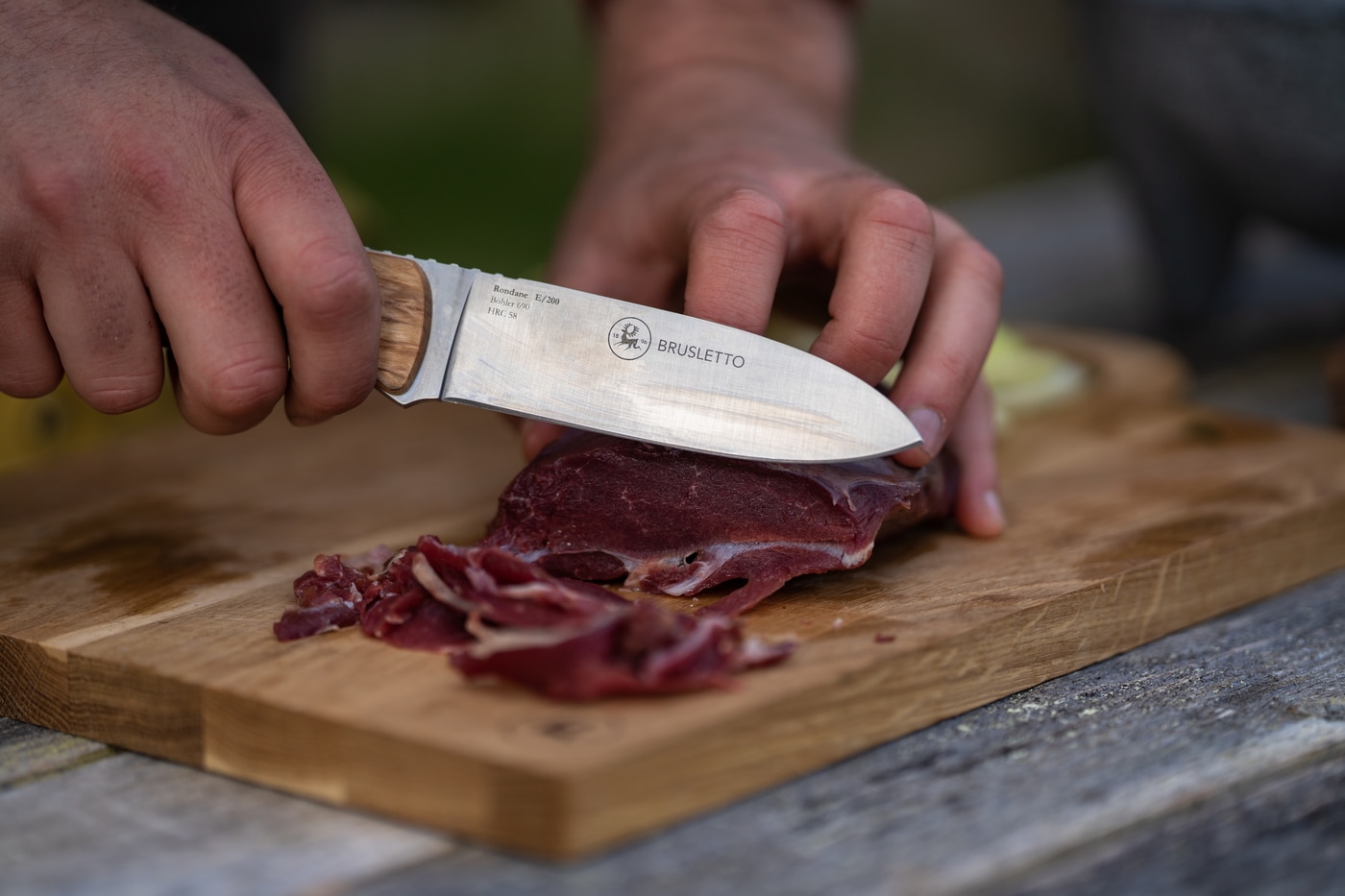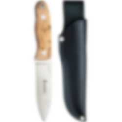 Denne kraftige lommekniv med fuldtang er ideel for jægere og friluftsentusiaster. Knivbladet kombinerer traditionel og moderne knivteknologi. Kniven er unik med sit spydformede blad og serratering på bladryggen. Dette er en robust turkniv med konstant slebet blad, der kan anvendes til mange formål. Den er afbalanceret og ligger komfortabelt i hånden under brug. Håndtagspladerne er indsnævrede og mere profilerede end hos tidligere modeller. Knivbladet i slidstærkt Bøhler 690 stål, som er nemt at slibe op igen. Olieret masur birk i håndtaget. Leveres med sort etui og en flot gaveæske.