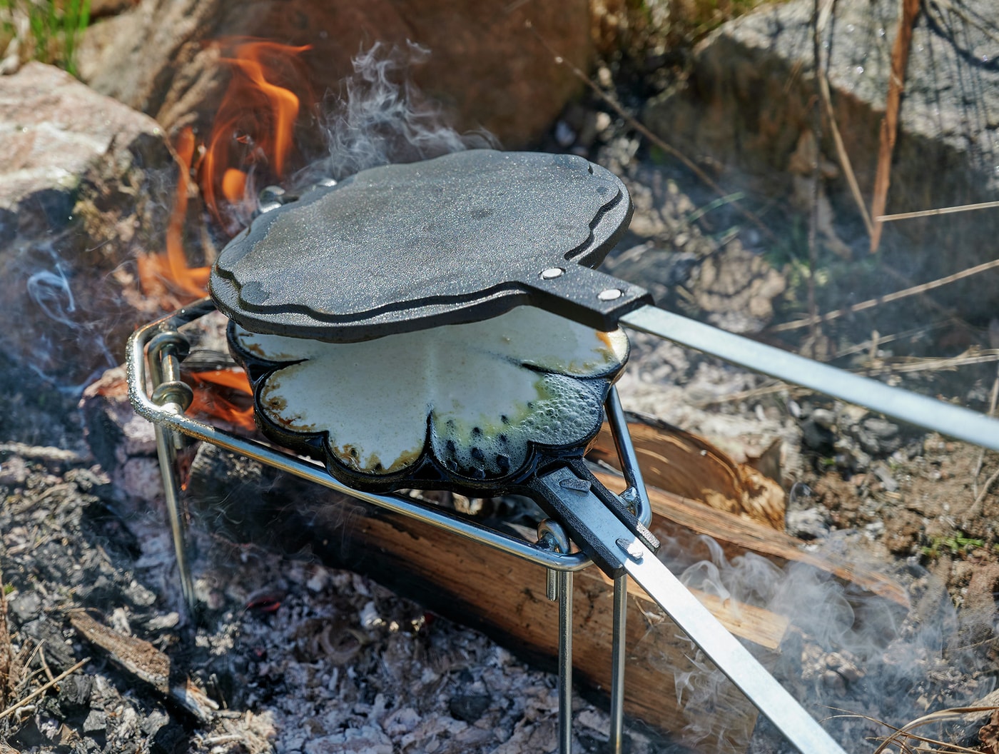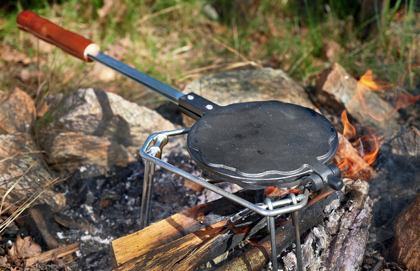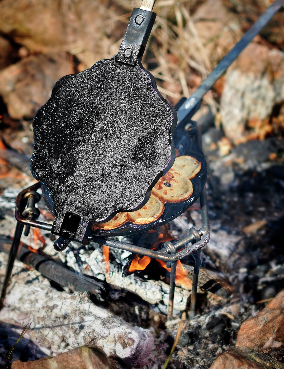Et stabilt stativ for matlaging eller kaffebrygging over åpen ild. Ildstativet plasseres rett over bålet. På snø eller is kan stativet kombineres med vårt bålunderlag. Fungerer perfekt med både våre kaffekjeler, steke heller og panner. Fleksibel, stabil og sammenleggbar konstruksjon. Høyde 18 cm.