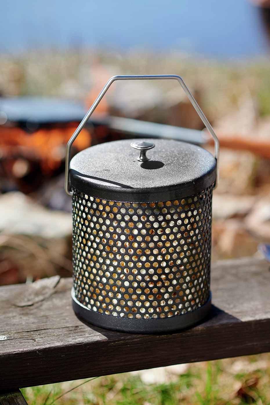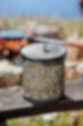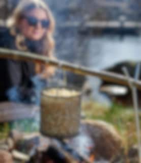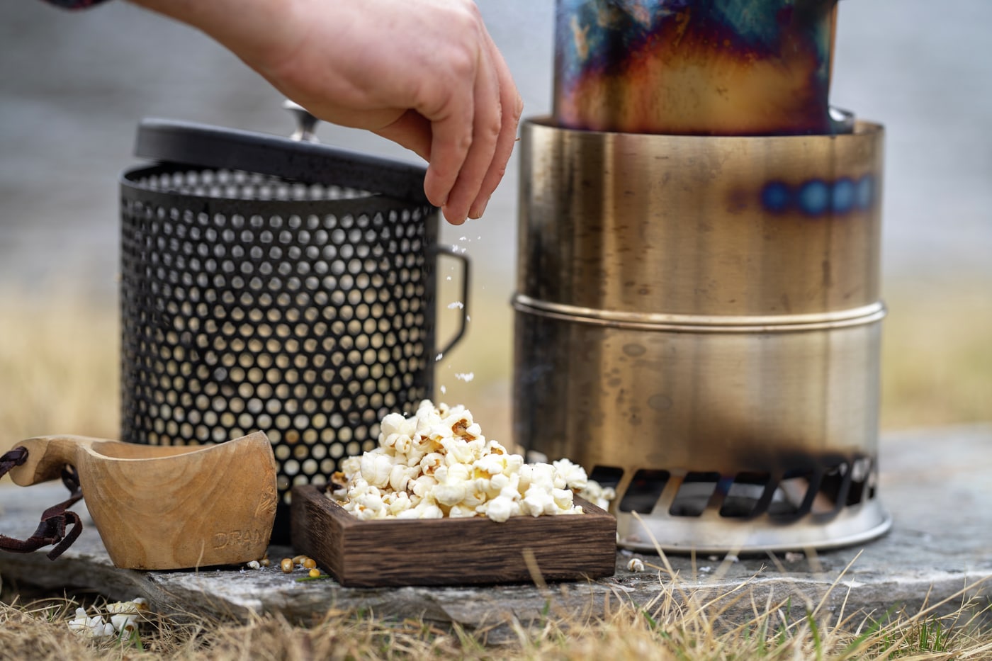 Popcorngryte er en festlig måte å lage popcorn på over åpen ild og ekstra tur glede for både barn og voksne. Den tykkere stålbunnen fordeler varmen fint, en god smørklump eller en skvett olje på bunnen så er det bare å poppe som vanlig. Den fungerer selvfølgelig også over grillen eller gassbrenneren. Høyde 17 cm, diameter 16 cm.