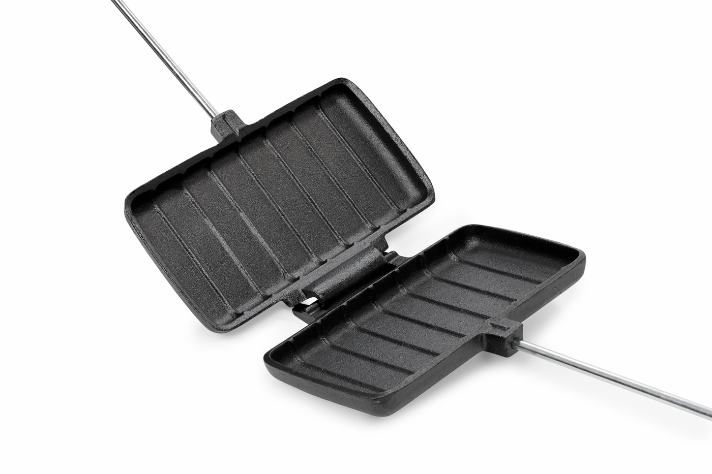Et solid sandwichjern i støpejern for bruk over åpen ild. Trehåndtak og langt skaft for enkel håndtering. Perfekt til toast i naturen eller grill opp til flere grillpølser samtidig i den. Mål på grilloverflaten ca 20 × 11 cm. Total lengde ca 75 cm.