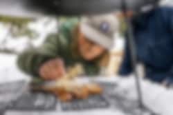 En stekehelle for den intime gruppen eller familien, passer fint for 1-4 personer. En fleksibel modell som er enkel å ta med ut i skogen, i båten eller i bobilen. Stekehellen kan brukes i kombinasjon med den medfølgende gassbrenneren på stativ, men også på en grill eller rett over åpen ild. Stekehellen er laget av høykvalitets varmvalset stål og leveres fabrikkoljet.