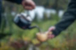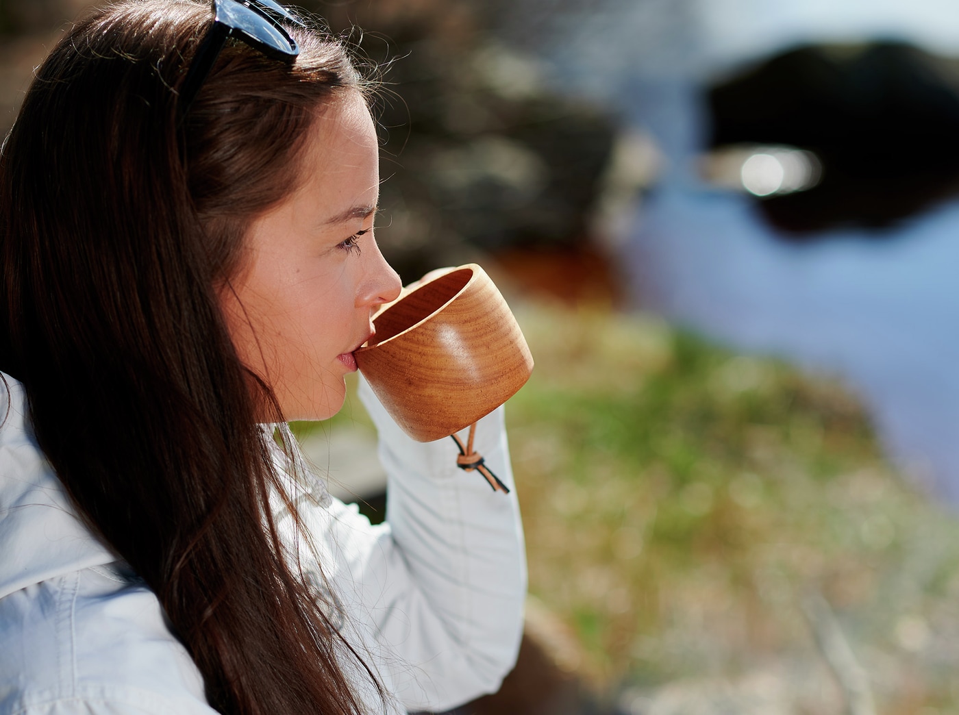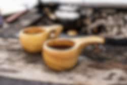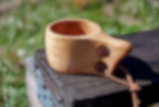 Kokt kaffe smaker ekstra godt fra en trekopp. Kopp med enkelt håndtak laget av slitesterkt gummitre. Rommer ca 15 cl. Mål: 15 x 6 cm, høyde 6 cm.