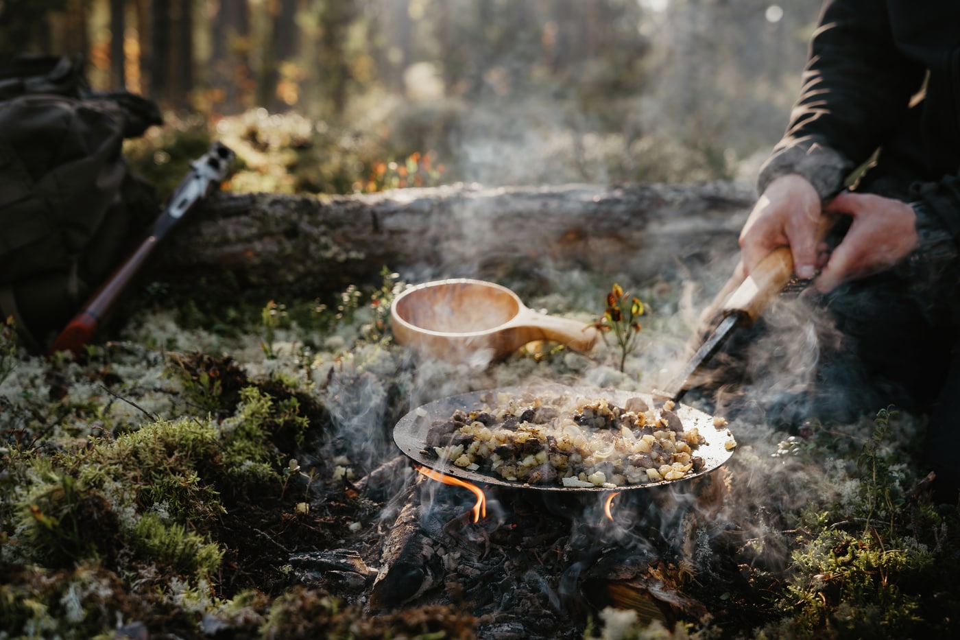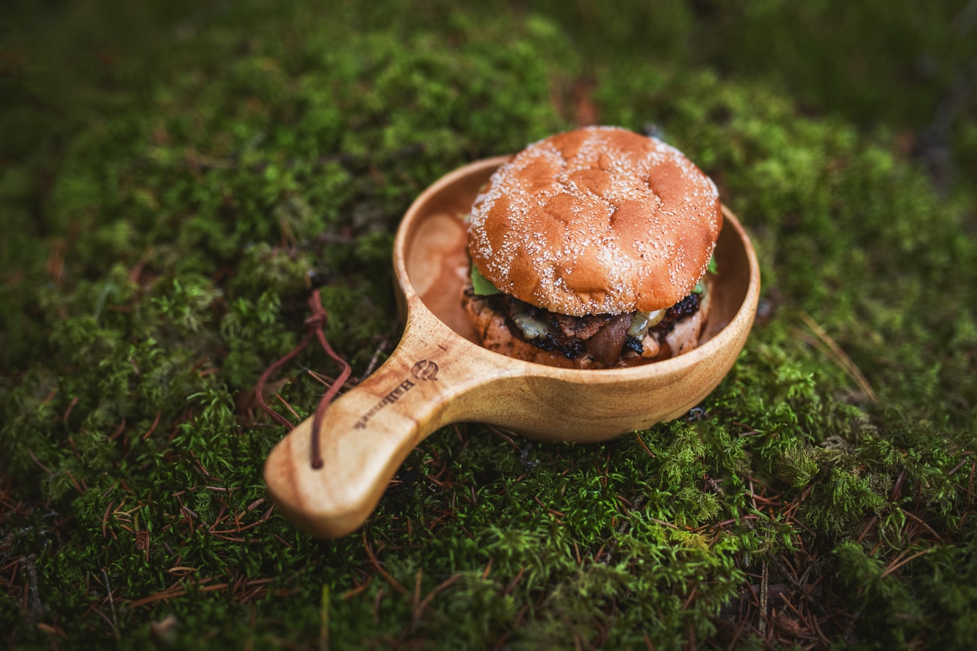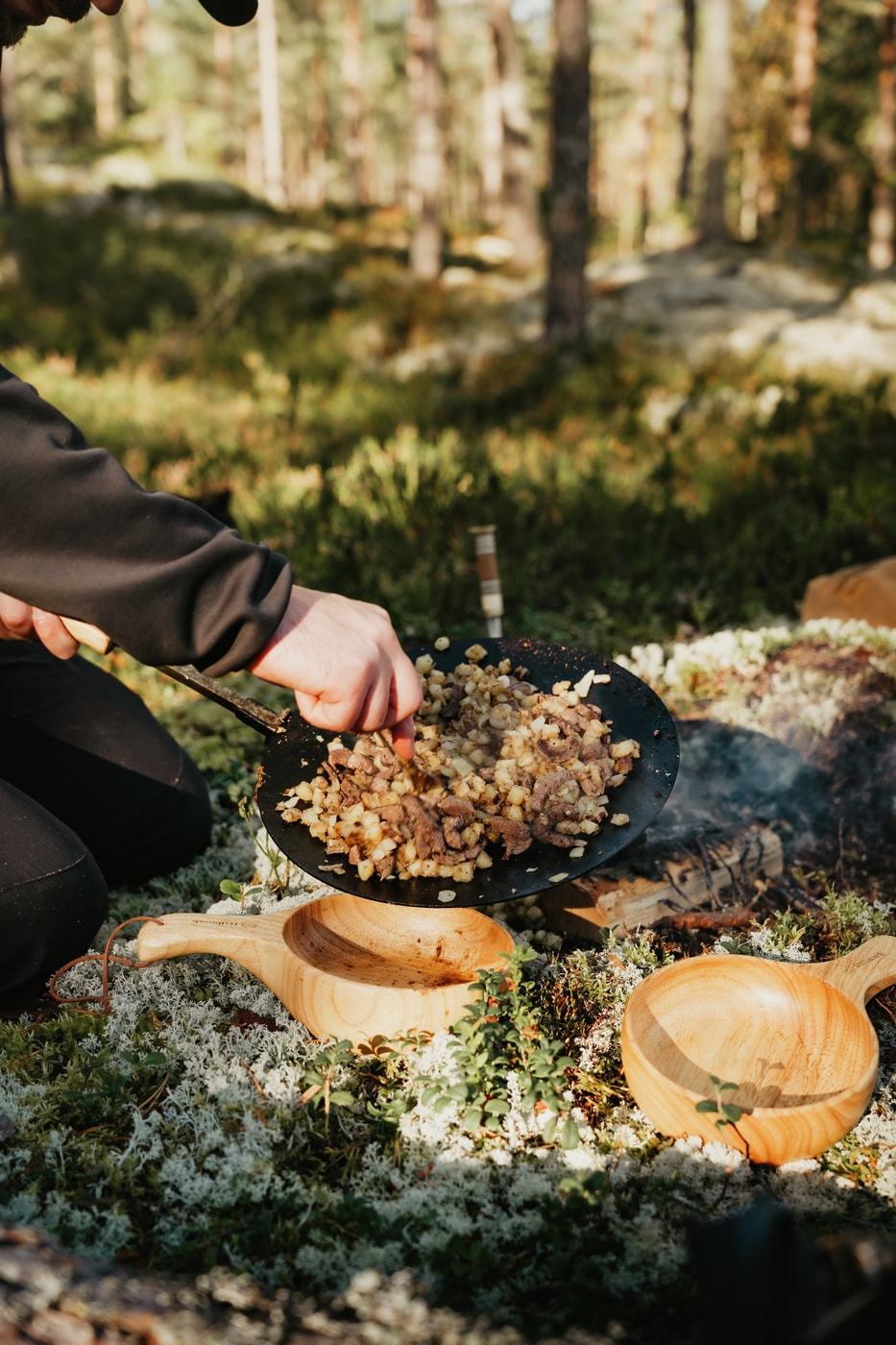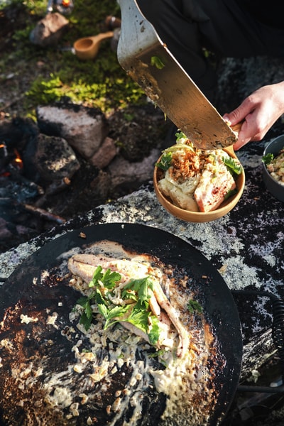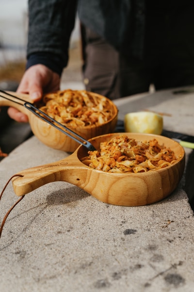 En stor treskål som kan brukes som både tallerken og skål. Skålens mål: høyde ca 3,5 cm, diameter ca 14 cm