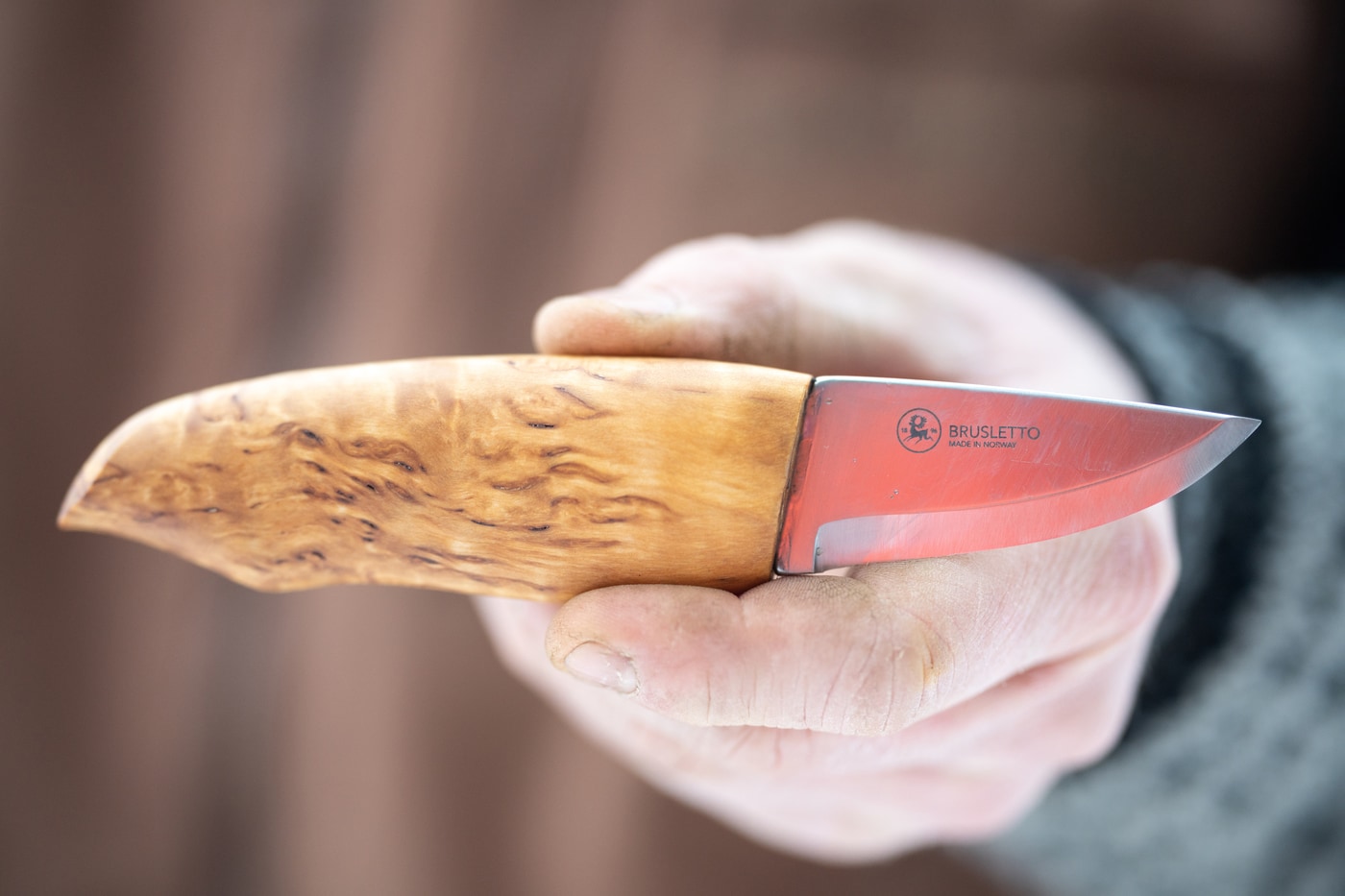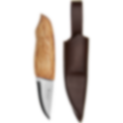 Knivbladet er kort og kan brukes til alle typer oppgaver. Håndtaket er laget av masurbjørk og kniven blir levert med en slire i brunt okselær med sikkerhetsinnlegg. Rognald kniven er håndlaget, og satt sammen på vår fabrikk på Geilo.