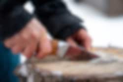 Det korte Knivbladet gjør kniven lett å håndtere. Skaftet er laget av masurbjørk. Øverst på skaftet er det et hull til feste av stropp eller karabin krok, dette gjør at du alltid kan ha kniven tett på kropp og unngå å miste den mens du går eller legger den fra deg på et uegnet sted.