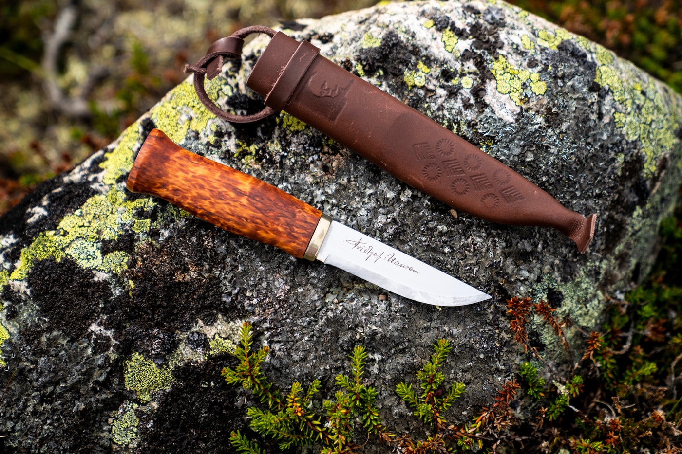 Robust snittekniv, der kan anvendes til det meste. Knivbladet har et ligeslebet skaft. Dette er en kopi af den kniv, Fridtjof Nansen modtog fra eskimoerne i Grønland i 1888, og som han brugte aktivt på sine ekspeditioner. Knivbladet er lavet i slidstærkt sandvikstål, som er nemt at slibe. Olieret masur birk i håndtaget. Kniven leveres med læder etui og en flot gaveæske.
