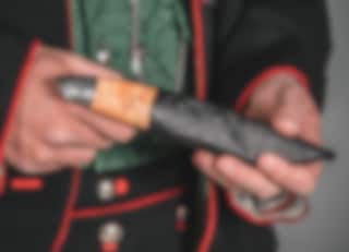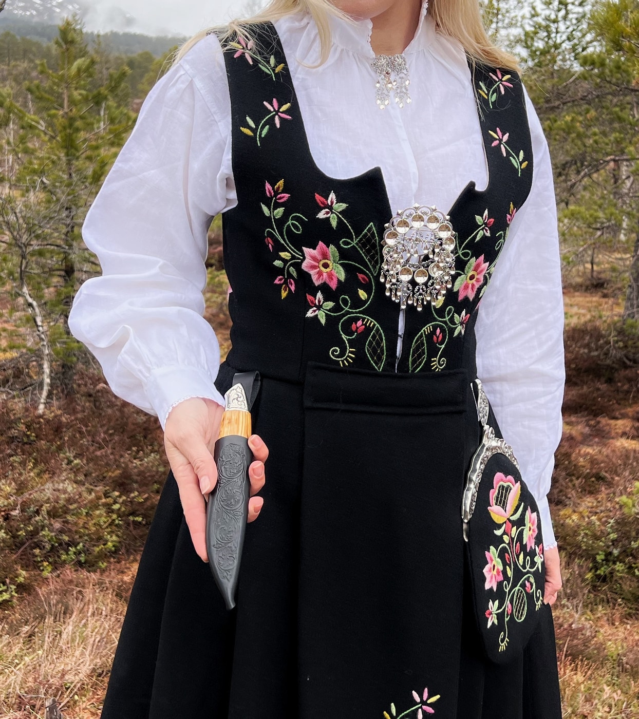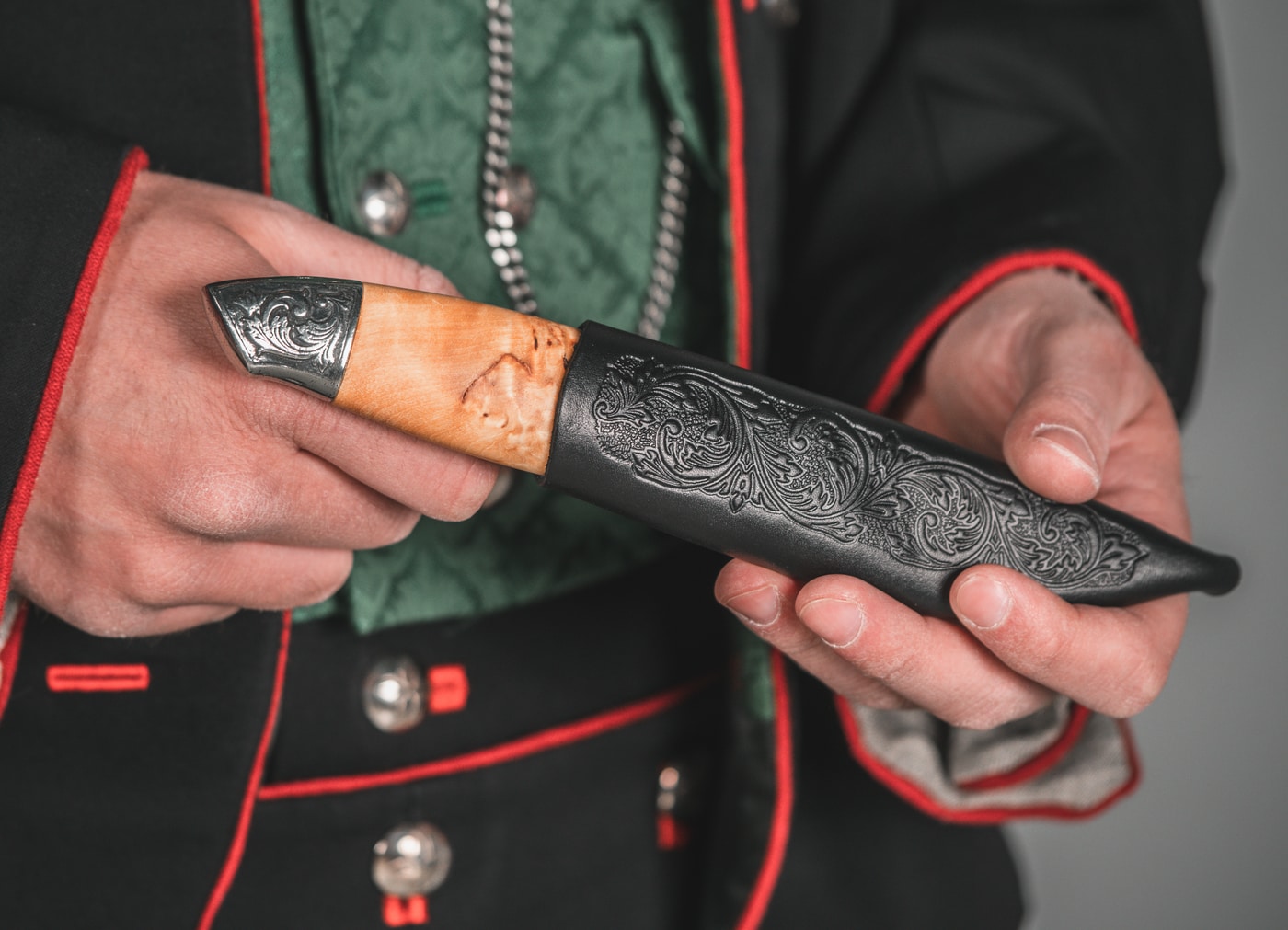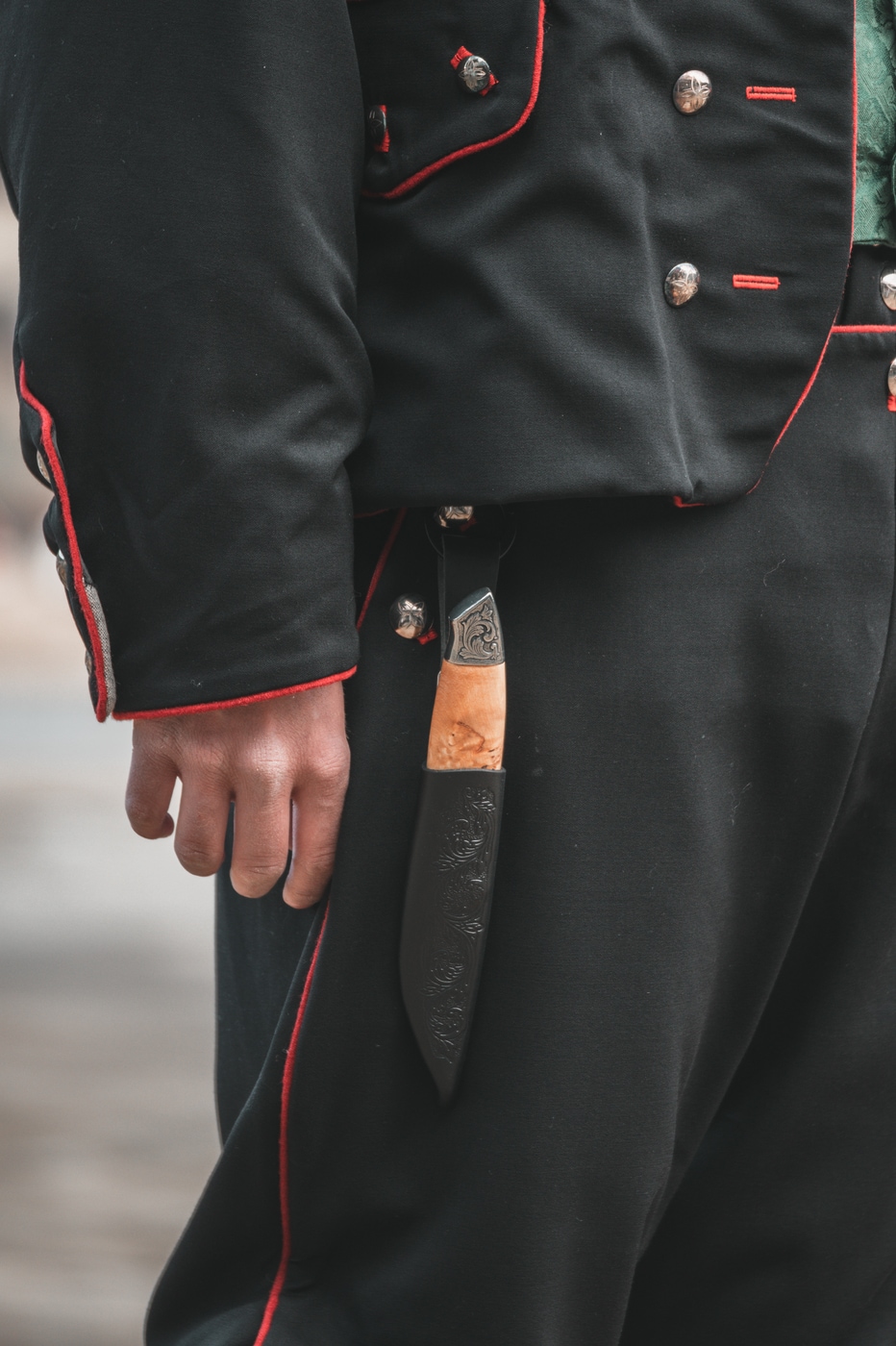 Hvis du har en nationaldragt, der fastgør kniven med en knap, kan du lave et snit på bagsiden af stroppeøjet, så kniven kan hænges på knappen.