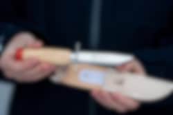 Vores klassiske spejderkniv med afrundet spids er udstyret med fingerbeskytter foran knivbladet, hvilket gør den sikker at bruge for unge eventyrere.