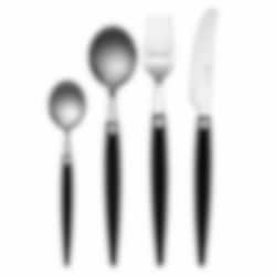 Sættet inkluderer fire knive, fire gafler, fire skeer og fire teskeer. Alt, hvad du behøver til en komplet borddækning. For at sikre lang holdbarhed og bevare bestikkets glatte finish, er det vigtigt at følge nogle simple vedligeholdelsesråd: Skyl madrester af efter brug, vask i hånden i varmt vand med mildt rengøringsmiddel, og tør grundigt med en blød klud. Ved brug af opvaskemaskine skal du vælge et skåneprogram og tørre bestikket af efter programmet er færdigt. Undgå slibemidler og sølvpolering, da det kan skade overfladen.