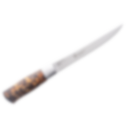 Hunter Premium Flexible kniven er designet, udviklet og håndfremstillet i Geilo. Kniven er særligt velegnet til filetering af fisk, udbening af kød og fjerkræ. Det tynde og fleksible knivblad gør det muligt at nå trange steder og manøvrere kniven præcist. Håndtaget er det samme, som vi bruger på vores Hunter-køkkenknive og friluftsknive, hvilket giver et godt greb og er behageligt at arbejde med. Kombinationen af det skarpe, tynde blad og håndtaget skaber et komfortabelt og effektivt arbejdsredskab, som også ser godt ud på din knivblok. Kniven kan nemt slibes op med et slibestål, når det er nødvendigt.