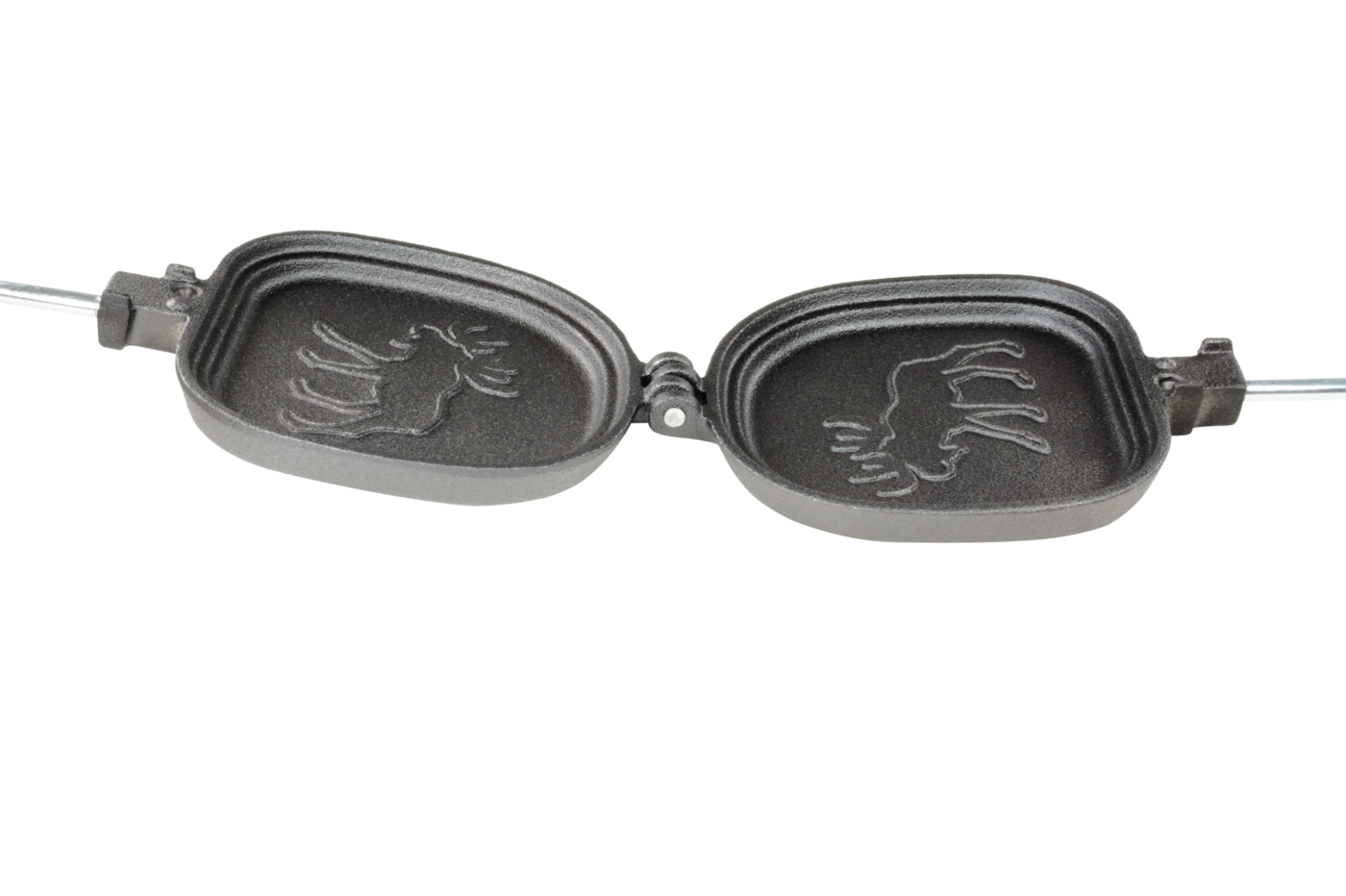 Et solid sandwichjern i støpejern for bruk over åpen ild. I grillflaten er det et elgmotiv som overføres til sandwichen når den grilles i jernet. Trehåndtak og langt skaft for enkel håndtering over bål. Perfekt til å grille en stor sandwich og den rommer også opp til flere grillpølser samtidig. Total lengde ca 75 cm.