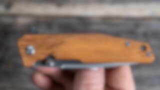 Knivbladet har fuld flatslibning, hvilket betyder, at slibningen starter ved knivryggen og går i en lige linje ned til eggen. Fordelen ved flatslibning er en fremragende skæreevne, mens ulempen er en lidt mindre robust kniv. Knivbladets tykkelse er 2,2 mm, hvilket er det tyndeste af vores foldeknive. Det gør den blandt andet lettere at snitte med. Ulempen er, at bladet skal slibes lidt oftere.
