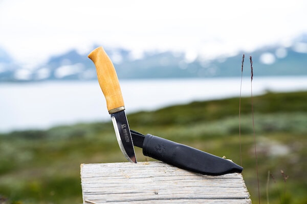 "Brusletto-snittekniven" er en traditionel, enkel og pålidelig universalkniv med skaft i olieret birk. Den har et ret slebet blad, holk i sterling sølv og en farvet okseskindsskede med sikkerhedsindsats. Bladet er lavet af rustfrit knivstål 1.4116N.